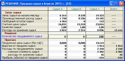 В данном разделе программы (рис. 2.14) принимаются решения, связанные с продажей сырья.