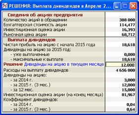 Рис. 2.17. Раздел «Решения/Выплата дивидендов»