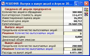 В данном разделе программы (рис. 2.18) принимаются решения, связанные с изменением количества акций Предприятия, находящихся в обращении.