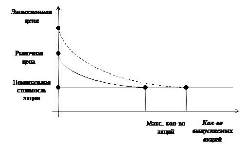 Рис. 2.19. Зависимость эмиссионной цены от количества выпускаемых акций