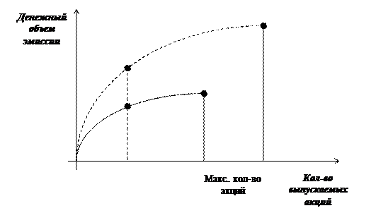 Рис. 2.20. Зависимость объема эмиссии от количества выпускаемых акций