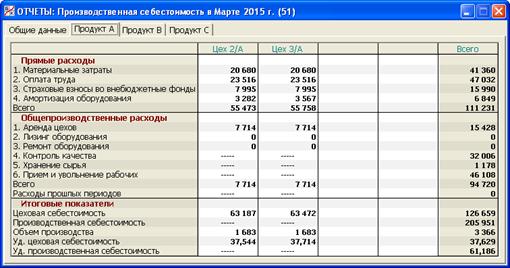 Рис. 5.8. Раздел «Отчеты/Производственная себестоимость/Продукт А»