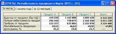 В данном разделе программы (рис. 5.16) приводится управленческий отчет об эффективности продаж продукции видов A, B и C.