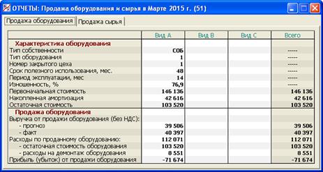 - прибыль (убыток) от продажи оборудования, т.е. разница между двумя предыдущими показателями.