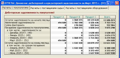 Из сказанного следует, что в текущем месяце могут поступать денежные средства за продукцию, проданную как в этом месяце (если не было рассрочки), так и в предыдущих трех месяцах (если рассрочка была). Соответственно, на конец текущего месяца за покупателями может числиться задолженность, которая будет гаситься в течение ближайших трех месяцев.