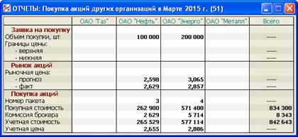 Рис. 5.29. Раздел «Отчеты/Покупка акций других организаций»
