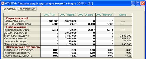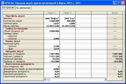 Рис. 5.30. Раздел «Отчеты/Продажа акций других организаций/По пакетам»