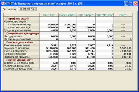 Окно раздела имеет две закладки: «По пакетам» и «По эмитентам». Соответственно, на первой закладке приводятся данные о проданных акциях в разрезе пакетов, на второй – в разрезе эмитентов (рис. 5.35).