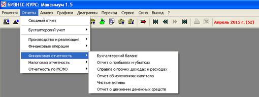 Рис. 6.1. Меню «Отчеты/Финансовая отчетность»