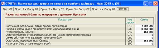 Рис. 7.7. Раздел «Отчеты/Декларация по налогу на прибыль/ Лист 05»