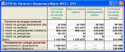 В этом разделе программы (рис. 7.16) приводятся данные Оборототно-сальдовой ведомости по счету 68 «Расчеты с бюджетом» и его субсчетам, предназначенных для учета расчетов по каждому виду налогов, уплачиваемых Предприятием.