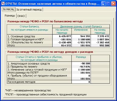 Эта закладка состоит из двух секций, где показывается движение разниц между МСФО и РСБУ с точки зрения двух упомянутых выше методов (рис. 8.8).