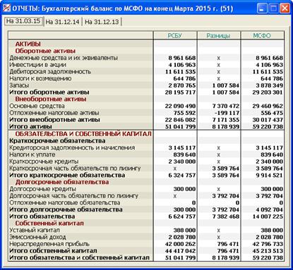 - столбец «МСФО» есть сумма двух предыдущих столбцов; он и выражает собственно Баланс по МСФО.