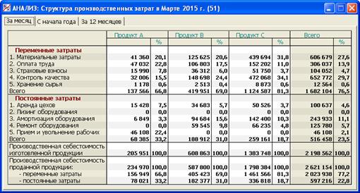 Рис. 9.15. Раздел «Анализ/Структура производственных затрат»