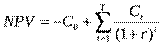 Учитывая, что в начале инвестиционного проекта возникает отток денежных средств в размере C 0, приходим к основному показателю инвестиционного проекта – чистой приведенной стоимости (Net Present Value – NPV):