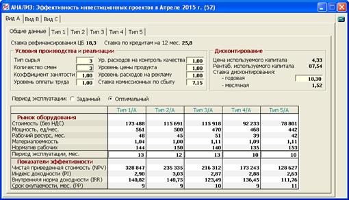 Все дело в том, что показатели эффективности существенно зависят не только от представленных характеристик оборудования, но и от предполагаемых условий его эксплуатации, условий продажи произведенной на нем продукции, самого периода эксплуатации оборудования, а также ставки дисконтирования.