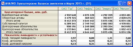 Рис. 9.29. Раздел «Анализ/Бухгалтерские балансы эмитентов»