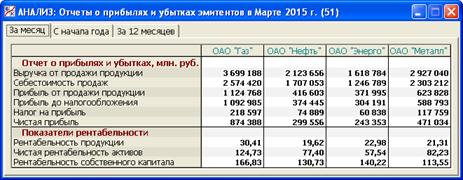 Рис. 9.30. Раздел «Анализ/Отчеты о прибылях и убытках эмитентов»