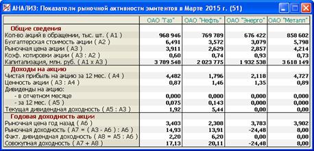 Рис. 9.31. Раздел «Анализ/Показатели рыночной активности эмитентов»
