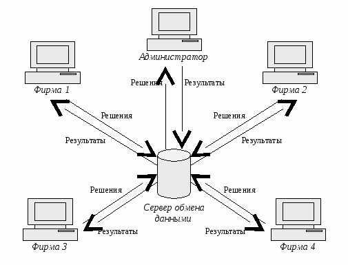 - решения, принятые каждой командой на очередном шаге игры, поступают на Сервер, откуда они считываются программой Администратора;