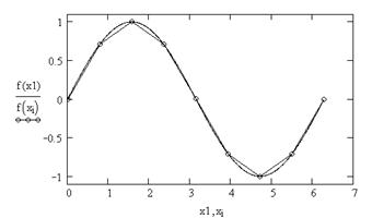 2. Визуализация табличной зависимости и истинных значений функции (рис. 5.1)