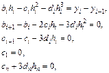Уравнения (5.32), (5.33) дают еще 2(n -1) условий. Для получения недостающих уравнений накладывают требования к поведению сплайна на концах отрезка интерполяции. Если потребовать нулевой кривизны сплайна на концах отрезка интерполяции (т.е. равенство нулю второй производной), то получим:
