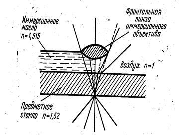 Рис. 13. Ход лучей в иммерсионном объективе.