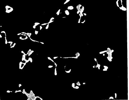 Рис. 21. Микоплазмы, растущие в питательном растворе клетки возбудителя бронхопневмонии крыс; электронная микрофотография, 11 200 х (Клейнбергер-Нобель Е., 1955).
