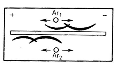 В основе реакции лежит принцип преципитации. ИЭФ, как правило, используется для исследования антигенной структуры микроорганизмов. Реакцию проводят в два этапа. Вначале проводят электрофоретическое разделение антигена в забуференном агаровом геле. Антигенный комплекс помещают в лунку, которая находится в центре геля, залитого на стеклянную пластинку. Затем через гель пропускают электрический ток, в результате происходит перемещение антигенов на неодинаковые расстояния соответственно своей электрофоретической подвижности. После этого в канавку, которая расположена по краю пластинки, вносят специфическую иммунную сыворотку и помещают во влажную камеру. Антигены и антитела диффундируют в геле навстречу друг другу. В месте их соприкосновения образуются дугообразные линии преципитации. С помощью ИЭФ анализируются состав и количество белков сыворотки крови, спиномозговой жидкости, микробных протеинов (рис. 45).