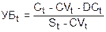 Уровнем безубыточности УБt на шаге t называется отношение "безубыточного" объёма продаж (производства) к проектному на этом шаге. Под "безубыточным" понимается объём продаж, при котором чистая прибыль становится равной нулю. При определении этого показателя принимается, что на шаге t: