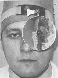 Рис. 1.1. Положение лобного рефлектора на голове врача.