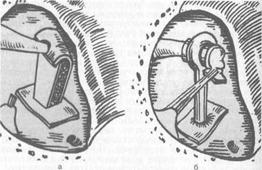 а — с использованием аутохряща; б — тефлоновым протезом.