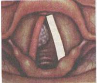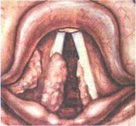 Рис. 7.8. Рак голосовой складки — начальная стадия.