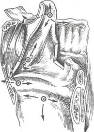 Рис. 7.9. Пути распространения раковой опухоли гортани в зависимости от первичной локализации.