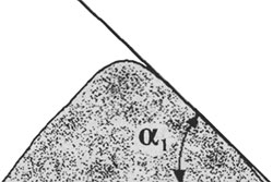 От подвижности частиц материала зависит величина угла α1 наклона к горизонтальной плоскости образующей конуса свободно насыпанного, без падения с высоты, материала.