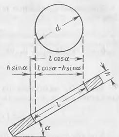 Пусть зерно шарообразной формы диаметром d падает отвесно на решето толщиной h с отверстиями размером l, установленное под углом а к горизонту (рис. 27).