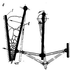 а - с простым качанием подвижной щеки; б - со сложным качанием;