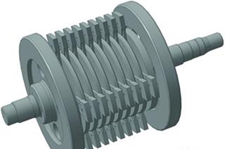 В роторных дробилках он представляет собой массивный вал с жестко закрепленными билами, выполненными по всей длине вала в виде ребер.