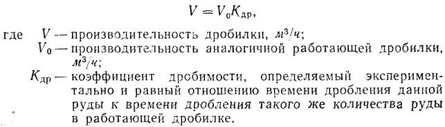 Производительность дробилок ударного действия зависит главным образом от дробимости материала. Она может быть рассчитана по формуле: