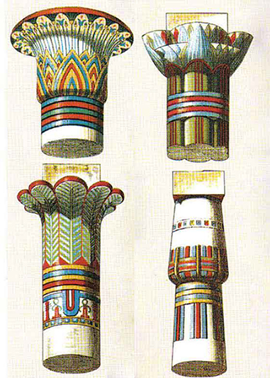 Египетский храм должен был являться как бы копией земли Египта. По голубому потолку, усеянному звёздами, изображались священные коршуны, на стенах был виден весь ритуал почитания божества в лице фараона, а роспись на полу напоминала воды Нила.