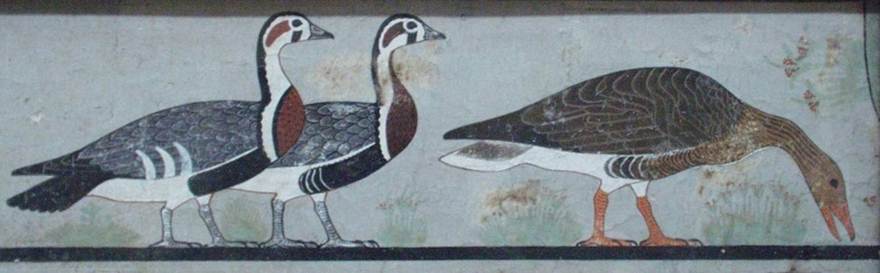 У египтян была особая любовь к природе, и особенно к цветам. В период Нового царства этот интерес к природе ещё более возрос, и в росписях домов богатых египтян стали воспроизводиться целые ландшафты. На стенах изображали висящие гирлянды цветов, цветущие деревья и кусты, потолки расписывали в цвет неба голубой краской с летящими утками, голубями и ястребами, а на полах воспроизводили пруды с цветущими лотосами, причём имитировали даже сверкающую на солнце лёгкую рябь поверхности воды.