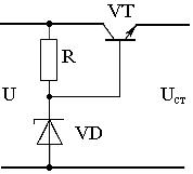 23. Если в стабилизаторе напряжения постоянного тока, приведенном на рисунке, транзистор заменить на аналогичный, но имеющий больший коэффициент передачи b, то коэффициент стабилизации напряжения Кст и выходное сопротивление Rвых стабилизатора изменятся следующим образом: