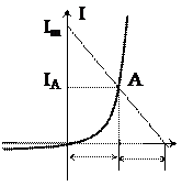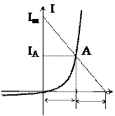 47. Линия нагрузки и ВАХ диода приведены на рисунке. Мощность, потребляемая всей цепью (диод и нагрузочный резистор), определяется выражением