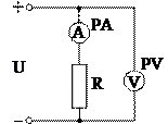 9. Схему косвенного измерения сопротивления R с помощью амперметра-вольтметра, показанную на рисунке, рекомендуется использовать для измеренияъ