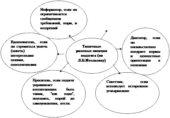Рис.3. Типичные ролевые позиции педагога (по Л.Б.Ительсону)