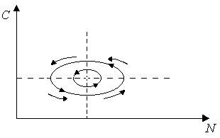 Если поместить обе изоклины на одном рисунке, получим картину взаимодействия популяций (рис.16).