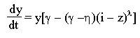 Положительные и отрицательные обратные связи между переменными описываются сложными нелинейными функциональными зависимостями. Система уравнений, описывающая изменение во времени переменных системы, представляется в виде