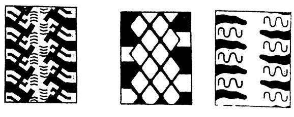 Примечание. Типы рисунков протектора приведены для иллюстрации принципа их построения. Форма, габариты, расположение элементов рисунков могут варьироваться.