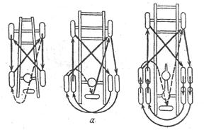Рис. 9. Перестановка шин: а - ненаправленным рисунком протектора; б - с направленным рисунком протектора.