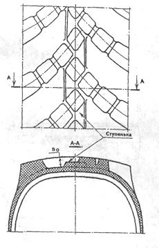 Рис. 12. Рисунок протектора с уступами у основания шашек в центральном поясе беговой дорожки.